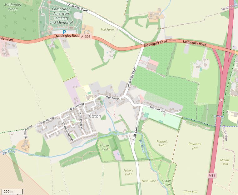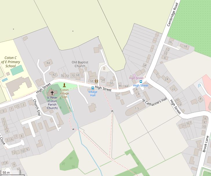 Coton is a village near Cambridge with excellent accessibility, being less than 1 mile from the M11 motorway. The Village Hall is located at 56 High Street, Coton, CB23 7PL. What3words are alert.span.daring. There is ample car parking.